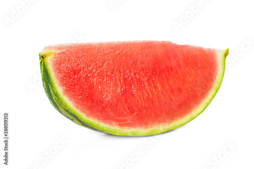 A slice of watermelon without seeds, isolated on white background. Soft focus
