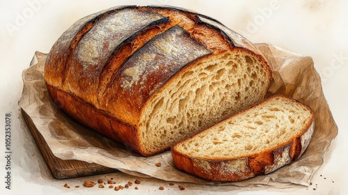 A Sliced Loaf of Crusty Bread on Parchment Paper