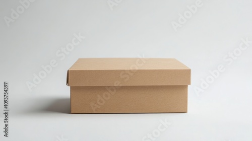 A slim kraft paper box with visible grain texture, centered on a smooth white surface