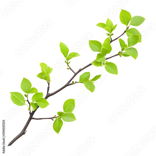 A small branch of green leaves, a clipart illustration with a transparent background.