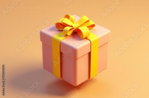 A small pink gift box adorned with a bright yellow ribbon sits against a soft warm background. Its cheerful design evokes a sense of celebration and joy perfect for any special occasion.