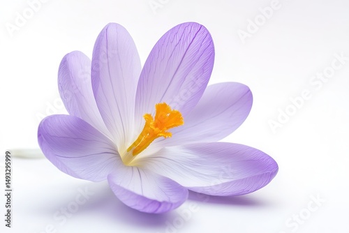 A small purple crocus with delicate petals and a soft yellow center, isolated on a white background