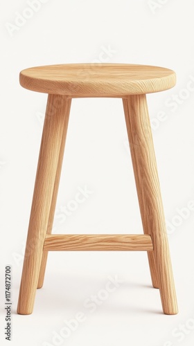 A small, round Scandinavian-style table with a minimalist design, featuring a light wood finish and three legs. Isolated on a light background.