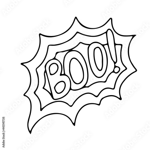 A small slogan in the cloud is an element of decoration for Halloween. Coloring. Gloomy Doodles. Vector illustration isolated on white background