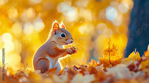 a small squirrel exploring autumnal scene