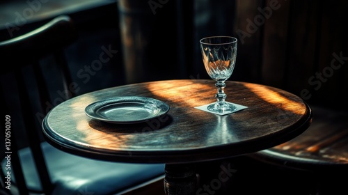 A small table with a glass and a plate on it