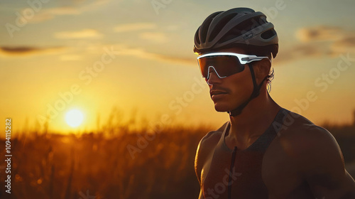 A smart chest strap worn by a triathlete that tracks heart rate, endurance, and recovery during all phases of the race, with real-time feedback on performance projected in augmented reality