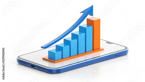 A smartphone displays a rising bar graph, symbolizing growth and success in data analysis or business performance.