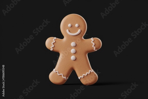 A smiling gingerbread man cookie with icing details, isolated on transparent background.