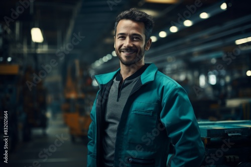 A smiling man at an industrial plant. Technician man. Industrial worker. Machine operator