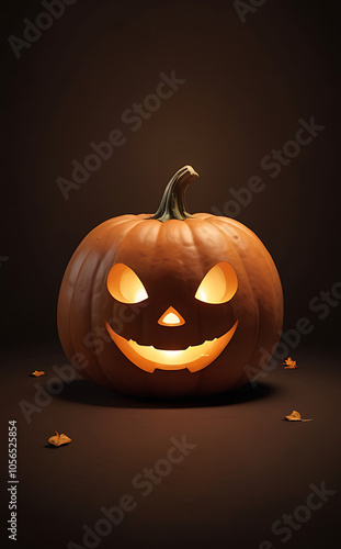 A smiling pumpkin with a tiny candle inside on a dark brown background, perfect for a cozy Halloween wallpaper.