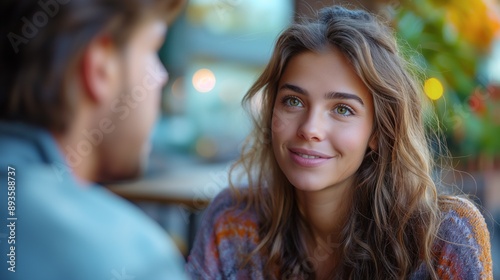A smiling woman in conversation with an amused expression, captured outside on a bright day.
