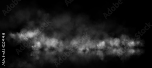 A smoky and misty effect featuring soft, cloudy white shapes spreading out on a transparent checkered background, ideal for atmospheric or special effects designs.