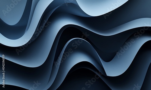 A smooth, abstract design featuring flowing waves in shades of blue and black, creating a sense of depth and movement.