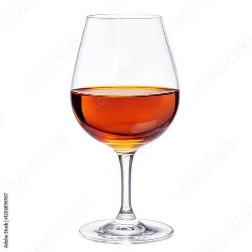 A smooth cognac in a snifter glass with a rich amber color, warm and elegant, isolated white background