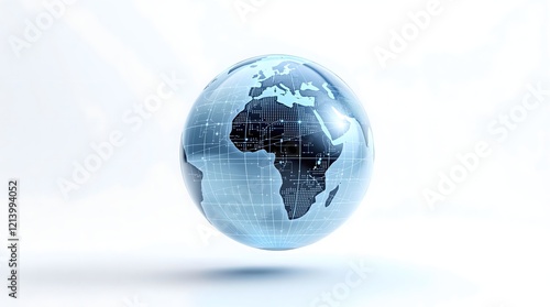 A smooth, futuristic digital globe floating in the center of a blank white background.