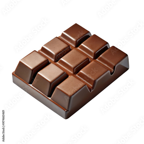 A smooth, glossy bar of chocolate with nine raised rectangular segments.