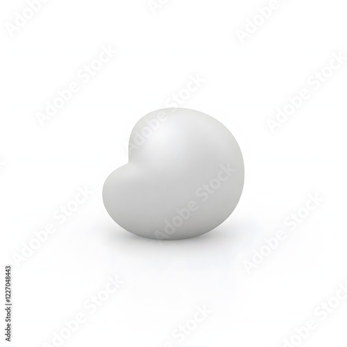 A smooth pearlescent object with a heart shaped indentation casting a soft shadow on a white surface