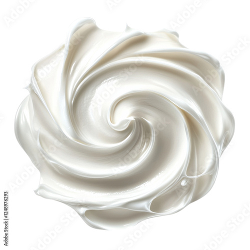 A smooth, swirling dollop of white cream with a glossy finish, showcasing an elegant and artistic texture.