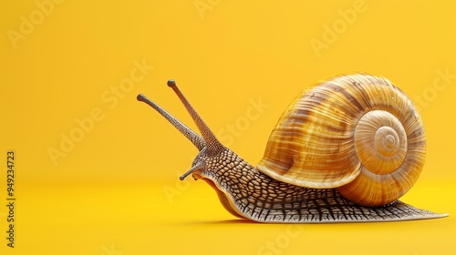 A snail crawling on a yellow background.