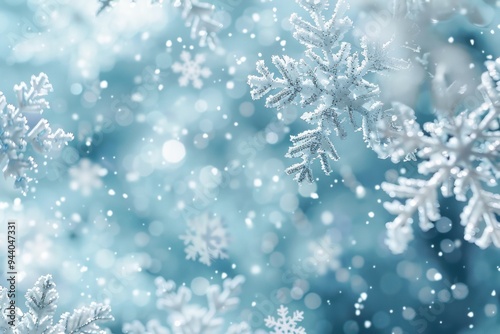 A snowflake is falling from the sky and is surrounded by other snowflakes