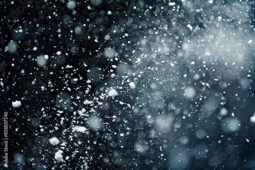 A snowstorm is depicted in the image, with snowflakes falling from the sky