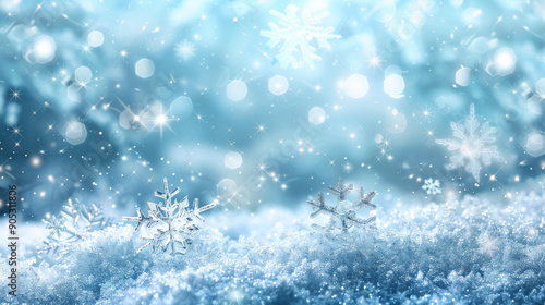 A snowy abstract background with a glitter effect, featuring shimmering snowflakes scattered across a pale blue surface. The sparkling design adds a touch of magic.