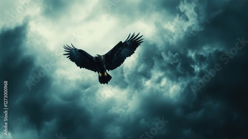A soaring eagle against a stormy sky, symbolizing resilience and strength in adversity