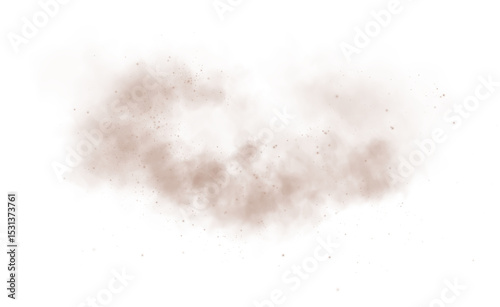 A soft chocolate brown dust cloud drifts through the air, illuminated by tiny glowing particles.