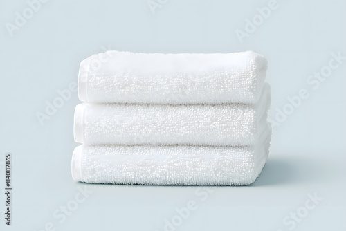 A soft cotton towel neatly folded, isolated on white background
