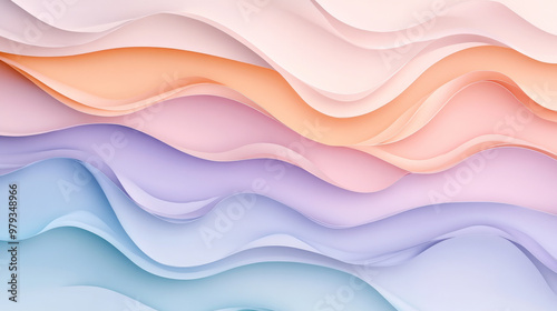 A soft, pastel paper cut background with wavy layers in shades of peach, lavender, and soft blue, creating a calming, serene design.