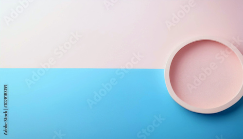 A soft pink circle rests on a vibrant blue and pale pink backdrop, creating a serene and minimalist composition. Perfect for design inspiration!