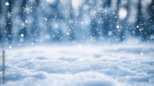A soft snowstorm falling over a frozen landscape, creating soft, swirling snowflakes and a dreamy winter scene.
