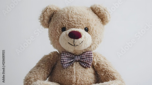A soft teddy bear with a bowtie, clean white background, transparent isolate