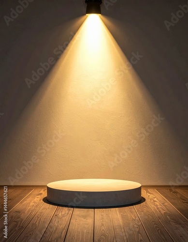 A soft, warm light illuminates a bare wall in a spacious, empty room, casting gentle shadows that enhance the serene atmosphere of solitude.