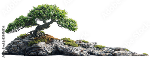 A solitary bonsai tree standing elegantly on a rocky surface, isolated on transparent background