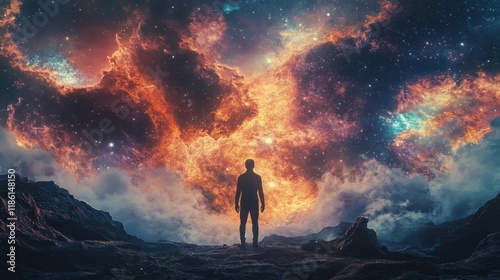 A Solitary Figure Gazing at a Cosmic Firestorm