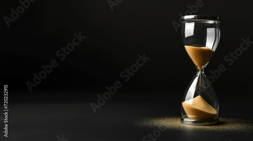 A solitary hourglass, filled with grains of sand, stands in a dimly lit room, marking the passing of time in a haunting yet beautiful display