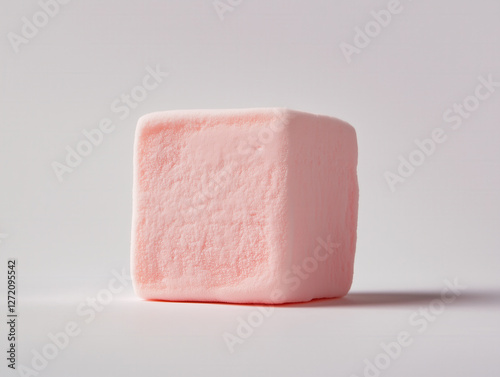 A solitary pink marshmallow set against a transparent backdrop, showcasing its soft texture and vibrant color.