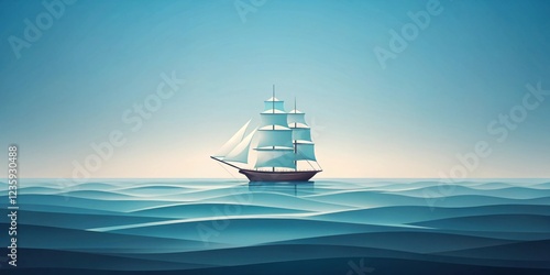 A solitary sailing ship with white sails navigates tranquil blue waters, its journey a serene and peaceful voyage.