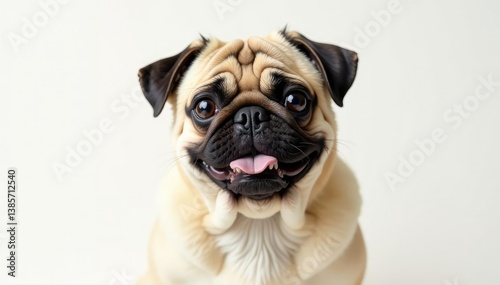 A solo pug, perfectly centered, on a pure white background , pug, adorable