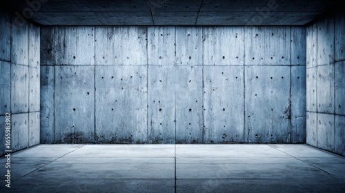 A somber scene evoking isolation and minimalism with a cold blue grey color palette, empty space, abandoned feel,