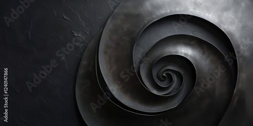 A sophisticated minimalist aesthetic against a deep black backdrop, Centralized delicate linear spirals and soft textures, Contemporary minimalist style