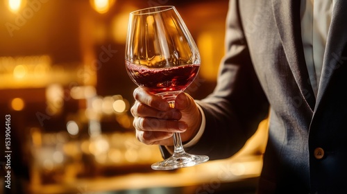 A sophisticated toast with a red wine embodying elegance and celebration under warm light