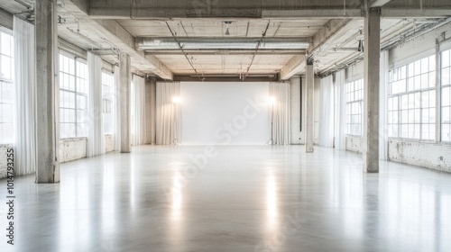 A spacious studio setup for film production, with bright lights and a ready backdrop for shooting.