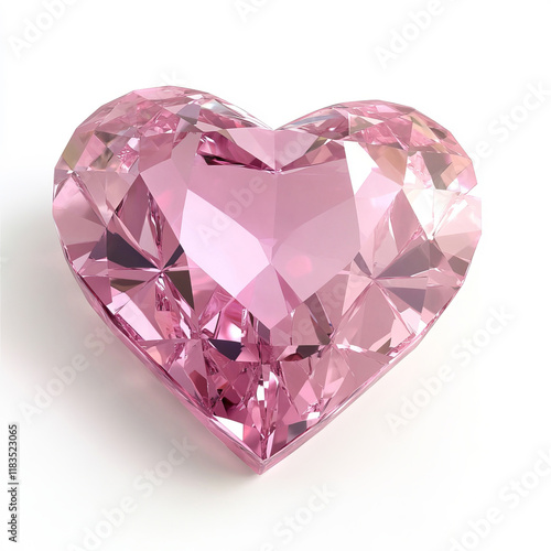 A sparkling pink, heart-shaped diamond rests on a white background. The 3D design emphasizes its flawless cut and vibrant pink hue, making it an ideal romantic symbol for jewelry designs.