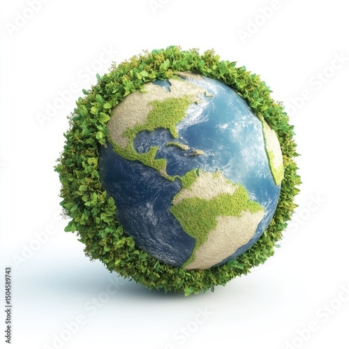 A sphere-shaped planet encircled by lush greenery.