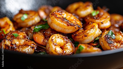 A spicy shrimp stir-fry cooked in a wok with fresh garlic, chili flakes, crisp vegetables like bok choy and carrots, tossed with a zesty lime and soy sauce dressing and served over rice noodles.