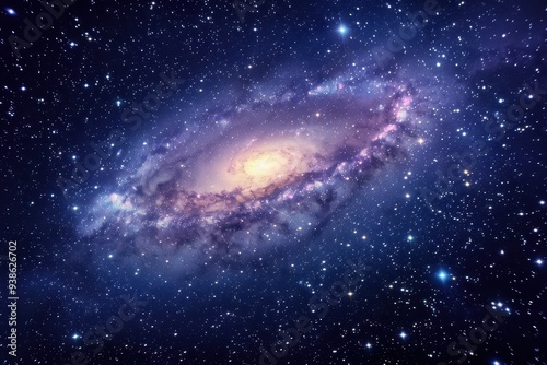 A Spiral Galaxy with a Bright Core in a Starry Night Sky