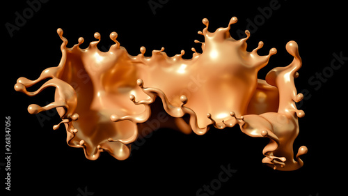 A splash of golden caramel on a black background. 3d illustration, 3d rendering.